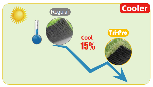 Прохладнее обычной синтетической травы на 15% и может отражать больше инфракрасного света