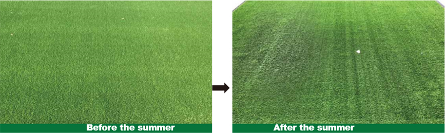 Искусственное травяное покрытие широко используется в спорте, садоводстве и в декоративных целях. Большинство из них вымощено на открытом воздухе. В жаркое лето температура воздуха может достигать 45 ℃. Температура поверхности газоны может достигать 90 ℃. Искусственное травяное покрытие должно обладать хорошей термостойкостью.