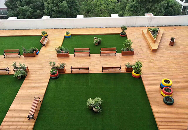 Поверхность искусственного газона DIY «сделай своими руками» можно заменить любыми декоративными материалами, такими как пластиковое дерево, булыжник, доска и т.д.